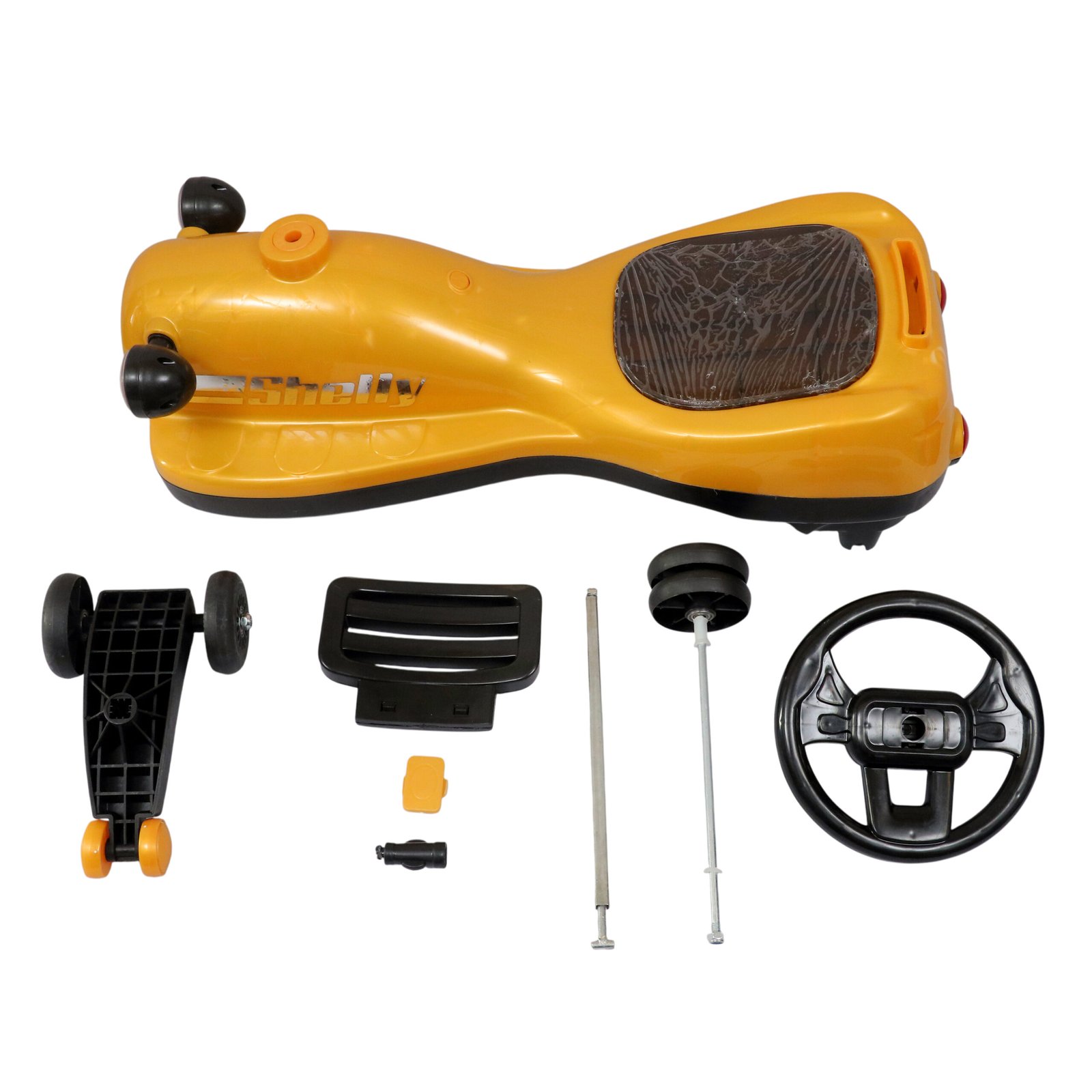 Swing car comes with wheels to ensure a smooth and gentle ride and provides kids with a comfortable and enjoyable ride. It is also equipped with RGB lights adding joy in every ride.
